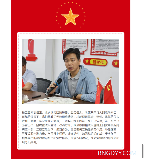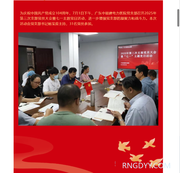 本院动态 联系电话:020-82078966 邮箱:rngd@crmedical.hk 【QQ咨询】: 七一建党节 | 电力医院党支部开展庆“七一”主题党日活动 http://www.rngdyy.com 时间:2025-07-01 编辑:广东中能建电力医院 阅读:495 上一篇:润心分享 | 7cm子宫肌瘤!广东中能建电力医院“拆瘤团队”拿捏! 下一篇:润心分享 | 区域联动护光明,医养协作暖人心 我要评论: 相关报道: 润心分享 | 区域联动护光明,医养协作暖人心 警示教育敲警钟,守纪护廉树清风|广东中能建电力医院党支部组织参观广东省反腐倡廉教育基地 润心分享 | 断腕重生:医术铸就生命奇迹 谈判采购公告 | 广东中能建电力医院 供应室二层板房改造监理服务项目采购公告 本院动态 | 以考促学强基础,以练促精保安全 ——我院圆满完成2025年第二季度“三基三严”考核工作 润心分享 | 一例糖尿病高渗性昏迷合并酮症酸中毒病例分享及科普 圆满收官 | 电力医院2025年三伏天灸义诊活动深受市民好评! 中国医师节 | “德馨于行,技精于勤”——向所有的医务工作者致敬! 地址:广州市黄埔区黄埔东路2957号志诚楼(门诊部) 黄埔东路3375号大院(住院部) 咨询:020-82078966 邮箱:rngd@crmedical.hk 传真:86(020) 82078027 患者服务小程序 官方订阅号 Copyright 2025 广东中能建电力医院版权所有 粤ICP备20049783号 服务性质:非营利性网站 粤公网安备 号