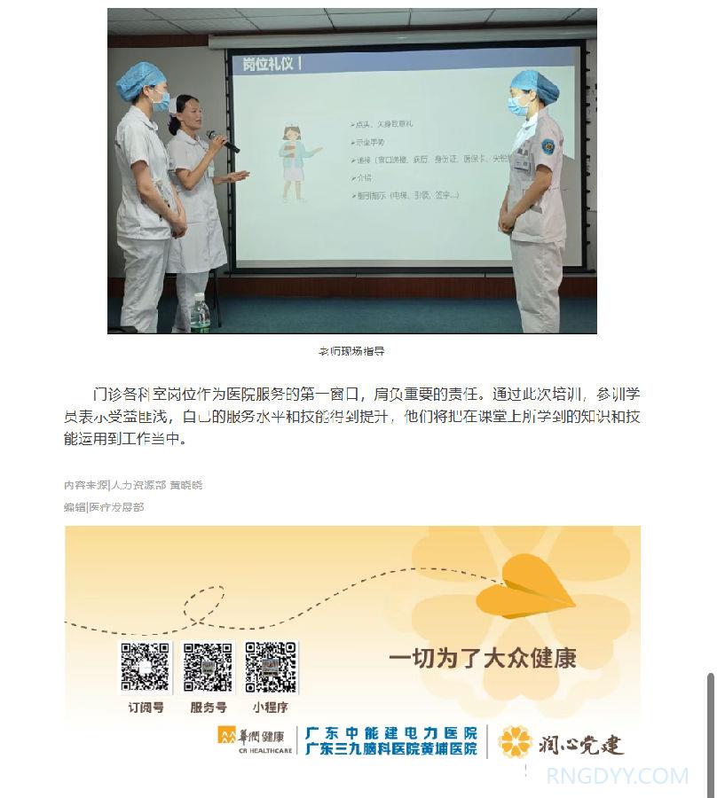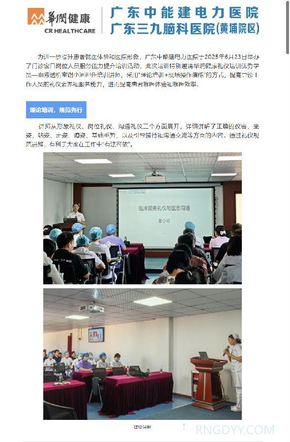 本院动态 联系电话:020-82078966 邮箱:rngd@crmedical.hk 【QQ咨询】: 本院动态 | 门诊窗口工作人员服务能力提升培训纪实 http://www.rngdyy.com 时间:2025-07-09 编辑:广东中能建电力医院 阅读:455 上一篇:七一建党节 | 电力医院党支部开展庆“七一”主题党日活动 下一篇:润心分享 | 区域联动护光明,医养协作暖人心 我要评论: 相关报道: 润心分享 | 区域联动护光明,医养协作暖人心 警示教育敲警钟,守纪护廉树清风|广东中能建电力医院党支部组织参观广东省反腐倡廉教育基地 润心分享 | 断腕重生:医术铸就生命奇迹 谈判采购公告 | 广东中能建电力医院 供应室二层板房改造监理服务项目采购公告 本院动态 | 以考促学强基础,以练促精保安全 ——我院圆满完成2025年第二季度“三基三严”考核工作 润心分享 | 一例糖尿病高渗性昏迷合并酮症酸中毒病例分享及科普 圆满收官 | 电力医院2025年三伏天灸义诊活动深受市民好评! 中国医师节 | “德馨于行,技精于勤”——向所有的医务工作者致敬! 地址:广州市黄埔区黄埔东路2957号志诚楼(门诊部) 黄埔东路3375号大院(住院部) 咨询:020-82078966 邮箱:rngd@crmedical.hk 传真:86(020) 82078027 患者服务小程序 官方订阅号 Copyright 2025 广东中能建电力医院版权所有 粤ICP备20049783号 服务性质:非营利性网站 粤公网安备 号