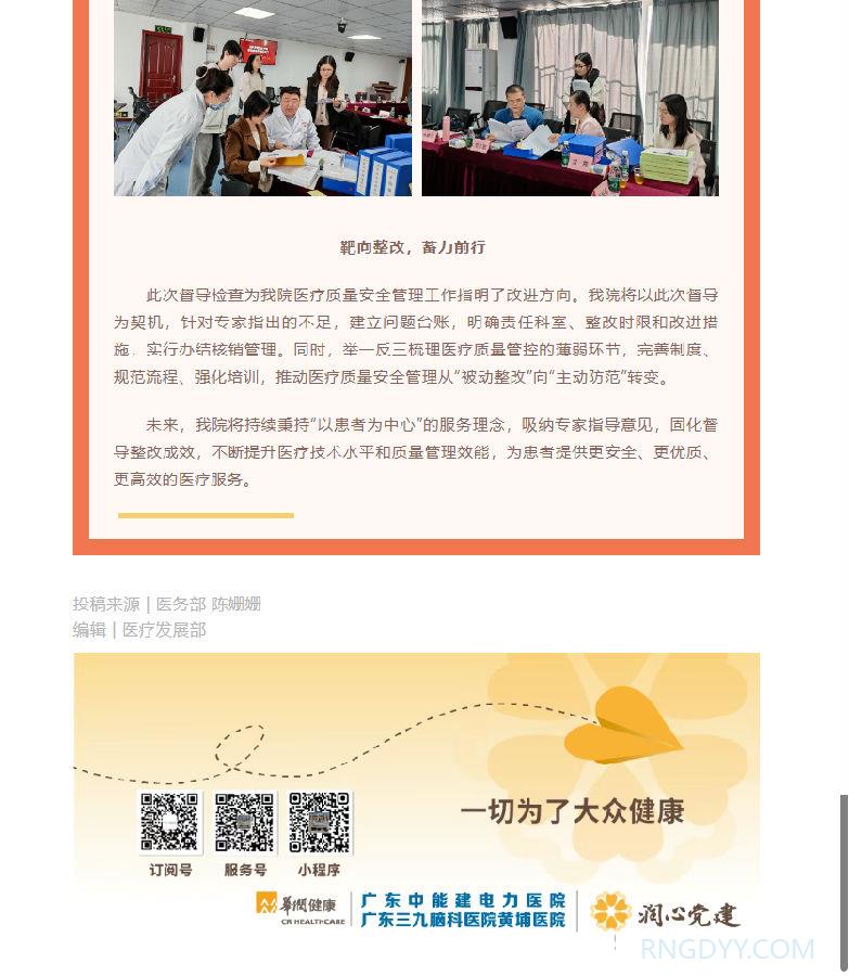 本院动态 联系电话:020-82078966 邮箱:rngd@crmedical.hk 【QQ咨询】: 本院动态 | 专家赋能促提升,督导领航保安全——我院迎来医疗服务与质量现场督导检查 http://www.rngdyy.com 时间:2025-11-27 编辑:广东中能建电力医院 阅读:105 上一篇:本院动态 | 筑牢安全防火墙,防患于未“燃” 下一篇:通知公告 | 电力医院元旦假期开诊安排 我要评论: 相关报道: 通知公告 | 电力医院元旦假期开诊安排 本院动态 | 专家赋能促提升,督导领航保安全——我院迎来医疗服务与质量现场督导检查 本院动态 | 筑牢安全防火墙,防患于未“燃” 本院动态 | 我院收到一封来自“12345”的特殊诉求单 以练筑防 守护生命 | 黄埔区危重孕产妇急救演练在我院顺利举行 本院动态 | 勠力同心拉练,护佑母婴安全 凝聚青春力量 谱写奋进新篇丨广东中能建电力医院团支部大会顺利召开 本院动态 | 广东中能建电力医院成功开展集中整治医德医风“学习教育月”活动 地址:广州市黄埔区黄埔东路2957号志诚楼(门诊部) 黄埔东路3375号大院(住院部) 咨询:020-82078966 邮箱:rngd@crmedical.hk 传真:86(020) 82078027 患者服务小程序 官方订阅号 Copyright 2026 广东中能建电力医院版权所有 粤ICP备20049783号 服务性质:非营利性网站 粤公网安备 号