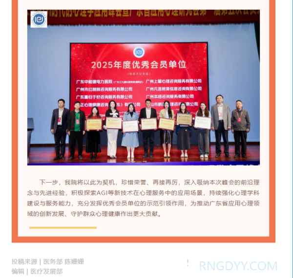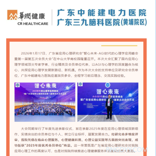 本院动态 联系电话:020-82078966 邮箱:rngd@crmedical.hk 【QQ咨询】: 本院动态 | 热烈祝贺我院荣获“广东省应用心理研究会2025年度优秀会员单位”称号 http://www.rngdyy.com 时间:2026-01-19 编辑:广东中能建电力医院 阅读:40 上一篇:惠民接种活动 | 进口九价HPV疫苗、进口重组带状疱疹疫苗均可优惠接种,速速关注了解! 下一篇:复盘过往,擘画蓝图——广东中能建电力医院2025年度总结表彰大会圆满举行 我要评论: 相关报道: 复盘过往,擘画蓝图——广东中能建电力医院2025年度总结表彰大会圆满举行 春节不打烊 | 广东中能建电力医院(广东三九脑科医院黄埔医院)春节正常开诊 喜报!我院获十五运会和残特奥会广州赛区执委会感谢信表彰 本院动态 | 我院收到一封来自“12345”的特殊诉求单 喜讯!广东中能建电力医院正式增名“广东三九脑科医院黄埔医院” 开诊通知 | 长期失眠、多梦?睡眠门诊今日起正式接诊,助你安享好眠 开诊通知 | 头痛、头晕反复缠?2月2日起,头痛头晕门诊正式开诊,精准诊疗解困扰 本院动态 | “凝聚力量·绽放光芒”广东中能建电力医院举办2026年度辞旧迎新趣味运动会 地址:广州市黄埔区黄埔东路2957号志诚楼(门诊部) 黄埔东路3375号大院(住院部) 咨询:020-82078966 邮箱:rngd@crmedical.hk 传真:86(020) 82078027 患者服务小程序 官方订阅号 Copyright 2026 广东中能建电力医院版权所有 粤ICP备20049783号 服务性质:非营利性网站 粤公网安备 号