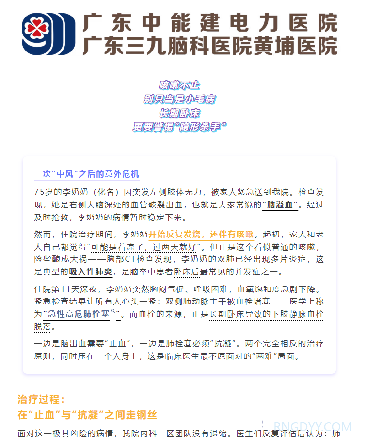 典型案例 联系电话:020-82078966 邮箱:rngd@crmedical.hk 【QQ咨询】: 润心分享 | 当“脑出血”遇上“肺栓塞”——一场与时间赛跑的生死营救 http://www.rngdyy.com 时间:2026-04-17 编辑:广东中能建电力医院 阅读:21 上一篇:润心分享 | 18岁健身少年腕部“鼓包”反复?我院曾伟敏主任精准手术解顽疾 下一篇:--敬请期待-- 我要评论: 相关报道: 润心分享 | 18岁健身少年腕部“鼓包”反复?我院曾伟敏主任精准手术解顽疾 润心分享 | 74岁“多发基础病”奶奶无痕手术,告别脱垂烦扰 润心分享 | 神经源性膀胱怎么办?间歇导尿:安全、自主的膀胱管理方案 润心分享 | 疝病得愈:微创续写健康篇章 润心分享 | 93岁高龄髋部骨折,1小时手术助其次日行走!医者仁心再创生命奇迹 润心分享 | 25岁小伙疯狂健身差点凉凉! 润心分享 | 断腕重生:医术铸就生命奇迹 润心分享 | 一例糖尿病高渗性昏迷合并酮症酸中毒病例分享及科普 地址:广州市黄埔区黄埔东路2957号志诚楼(门诊部) 黄埔东路3375号大院(住院部) 咨询:020-82078966 邮箱:rngd@crmedical.hk 传真:86(020) 82078027 患者服务小程序 官方订阅号 Copyright 2026 广东中能建电力医院版权所有 粤ICP备20049783号 服务性质:非营利性网站 粤公网安备 号