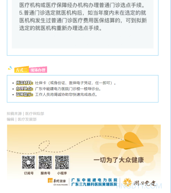 医保管理 联系电话:020-82078966 邮箱:rngd@crmedical.hk 【QQ咨询】: 关注医保 | “马上”选点,享受门诊报销! http://www.rngdyy.com 时间:2026-01-26 编辑:广东中能建电力医院 阅读:40 上一篇:积极落实协议管理,提高工伤服务能力 下一篇:--敬请期待-- 我要评论: 相关报道: 关注医保 | “马上”选点,享受门诊报销! 积极落实协议管理,提高工伤服务能力 总结过往,持续完善,努力进步——我院召开7月份医保办公会 地址:广州市黄埔区黄埔东路2957号志诚楼(门诊部) 黄埔东路3375号大院(住院部) 咨询:020-82078966 邮箱:rngd@crmedical.hk 传真:86(020) 82078027 患者服务小程序 官方订阅号 Copyright 2026 广东中能建电力医院版权所有 粤ICP备20049783号 服务性质:非营利性网站 粤公网安备 号