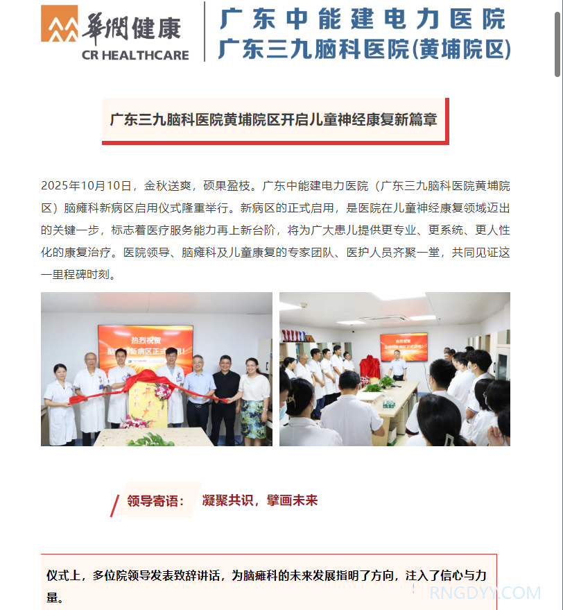 本院动态 联系电话:020-82078966 邮箱:rngd@crmedical.hk 【QQ咨询】: 本院动态 | 热烈祝贺脑瘫科新病区正式启用! http://www.rngdyy.com 时间:2025-10-10 编辑:广东中能建电力医院 阅读:11 上一篇:本院动态 | 筑牢安全防线,守护患者安康——电力医院心理行为科国庆节前全面安全排查工作纪实 下一篇:本院动态 | 广东中能建电力医院成功开展集中整治医德医风“学习教育月”活动 我要评论: 相关报道: 本院动态 | 脑瘫科住院部及儿童康复治疗部搬迁之你问我答 润心分享 | 区域联动护光明,医养协作暖人心 警示教育敲警钟,守纪护廉树清风|广东中能建电力医院党支部组织参观广东省反腐倡廉教育基地 润心分享 | 断腕重生:医术铸就生命奇迹 谈判采购公告 | 广东中能建电力医院 供应室二层板房改造监理服务项目采购公告 本院动态 | 以考促学强基础,以练促精保安全 ——我院圆满完成2025年第二季度“三基三严”考核工作 润心分享 | 一例糖尿病高渗性昏迷合并酮症酸中毒病例分享及科普 圆满收官 | 电力医院2025年三伏天灸义诊活动深受市民好评! 地址:广州市黄埔区黄埔东路2957号志诚楼(门诊部) 黄埔东路3375号大院(住院部) 咨询:020-82078966 邮箱:rngd@crmedical.hk 传真:86(020) 82078027 患者服务小程序 官方订阅号 Copyright 2025 广东中能建电力医院版权所有 粤ICP备20049783号 服务性质:非营利性网站 粤公网安备 号