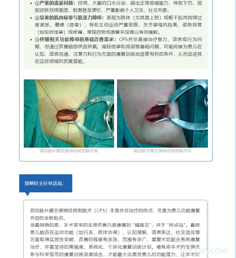 本院动态 联系电话:020-82078966 邮箱:rngd@crmedical.hk 【QQ咨询】: 脑瘫科科普时间:什么是颈动脉外膜交感神经网剥脱术 (CPS)? http://www.rngdyy.com 时间:2025-11-17 编辑:广东中能建电力医院 阅读:20 上一篇:润心分享 | 93岁高龄髋部骨折,1小时手术助其次日行走!医者仁心再创生命奇迹 下一篇:通知公告 | 关于电力医院儿科夜间门诊暂停的通知 我要评论: 相关报道: 脑瘫科科普时间:什么是颈动脉外膜交感神经网剥脱术 (CPS)? 润心分享 | 93岁高龄髋部骨折,1小时手术助其次日行走!医者仁心再创生命奇迹 本院动态 | 我院收到一封来自“12345”的特殊诉求单 通知公告 | 关于电力医院儿科夜间门诊暂停的通知 我为群众办实事 | 电力医院到公园上城开展“我为群众办实事,健康义诊进社区”主题综合义诊活动 以练筑防 守护生命 | 黄埔区危重孕产妇急救演练在我院顺利举行 整改公示 | 2025年服务大讨论问题查摆整改方案公示 激情全运 · 热血同行 | 广东中能建电力医院献血活动 地址:广州市黄埔区黄埔东路2957号志诚楼(门诊部) 黄埔东路3375号大院(住院部) 咨询:020-82078966 邮箱:rngd@crmedical.hk 传真:86(020) 82078027 患者服务小程序 官方订阅号 Copyright 2025 广东中能建电力医院版权所有 粤ICP备20049783号 服务性质:非营利性网站 粤公网安备 号