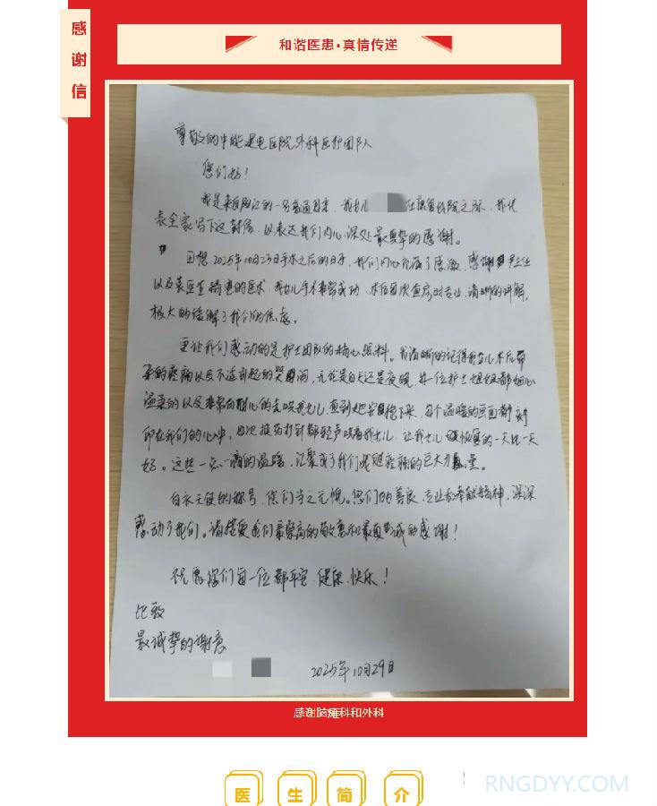 本院动态 联系电话:020-82078966 邮箱:rngd@crmedical.hk 【QQ咨询】: 仁心荣光 | 外科收到患者锦旗和感谢信 http://www.rngdyy.com 时间:2025-11-18 编辑:广东中能建电力医院 阅读:16 上一篇:通知公告 | 关于电力医院儿科夜间门诊暂停的通知 下一篇:--敬请期待-- 我要评论: 相关报道: 仁心荣光 | 外科收到患者锦旗和感谢信 脑瘫科科普时间:什么是颈动脉外膜交感神经网剥脱术 (CPS)? 本院动态 | 我院收到一封来自“12345”的特殊诉求单 通知公告 | 关于电力医院儿科夜间门诊暂停的通知 我为群众办实事 | 电力医院到公园上城开展“我为群众办实事,健康义诊进社区”主题综合义诊活动 以练筑防 守护生命 | 黄埔区危重孕产妇急救演练在我院顺利举行 整改公示 | 2025年服务大讨论问题查摆整改方案公示 激情全运 · 热血同行 | 广东中能建电力医院献血活动 地址:广州市黄埔区黄埔东路2957号志诚楼(门诊部) 黄埔东路3375号大院(住院部) 咨询:020-82078966 邮箱:rngd@crmedical.hk 传真:86(020) 82078027 患者服务小程序 官方订阅号 Copyright 2025 广东中能建电力医院版权所有 粤ICP备20049783号 服务性质:非营利性网站 粤公网安备 号