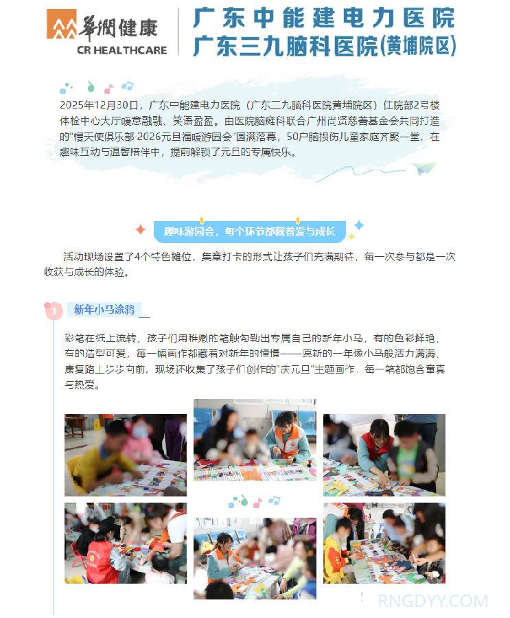 本院动态 联系电话:020-82078966 邮箱:rngd@crmedical.hk 【QQ咨询】: 福暖慢天使!这场元旦游园会,让康复路上满是星光 http://www.rngdyy.com 时间:2025-12-31 编辑:广东中能建电力医院 阅读:172 上一篇:本院动态 | 喜报!我院血透室以945分高分通过2025年广州市血液净化质量控制检查 下一篇:复盘过往,擘画蓝图——广东中能建电力医院2025年度总结表彰大会圆满举行 我要评论: 相关报道: 复盘过往,擘画蓝图——广东中能建电力医院2025年度总结表彰大会圆满举行 春节不打烊 | 广东中能建电力医院(广东三九脑科医院黄埔医院)春节正常开诊 喜报!我院获十五运会和残特奥会广州赛区执委会感谢信表彰 本院动态 | 我院收到一封来自“12345”的特殊诉求单 喜讯!广东中能建电力医院正式增名“广东三九脑科医院黄埔医院” 开诊通知 | 长期失眠、多梦?睡眠门诊今日起正式接诊,助你安享好眠 开诊通知 | 头痛、头晕反复缠?2月2日起,头痛头晕门诊正式开诊,精准诊疗解困扰 本院动态 | “凝聚力量·绽放光芒”广东中能建电力医院举办2026年度辞旧迎新趣味运动会 地址:广州市黄埔区黄埔东路2957号志诚楼(门诊部) 黄埔东路3375号大院(住院部) 咨询:020-82078966 邮箱:rngd@crmedical.hk 传真:86(020) 82078027 患者服务小程序 官方订阅号 Copyright 2026 广东中能建电力医院版权所有 粤ICP备20049783号 服务性质:非营利性网站 粤公网安备 号