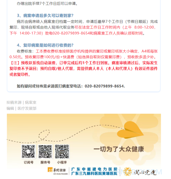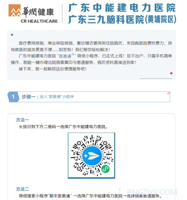 本院动态 联系电话:020-82078966 邮箱:rngd@crmedical.hk 【QQ咨询】: 本院动态 | 病案复印,“医寄通”帮您实现一键到家 http://www.rngdyy.com 时间:2026-01-26 编辑:广东中能建电力医院 阅读:39 上一篇:本院动态 | 热烈祝贺我院荣获“广东省应用心理研究会2025年度优秀会员单位”称号 下一篇:复盘过往,擘画蓝图——广东中能建电力医院2025年度总结表彰大会圆满举行 我要评论: 相关报道: 复盘过往,擘画蓝图——广东中能建电力医院2025年度总结表彰大会圆满举行 春节不打烊 | 广东中能建电力医院(广东三九脑科医院黄埔医院)春节正常开诊 喜报!我院获十五运会和残特奥会广州赛区执委会感谢信表彰 本院动态 | 我院收到一封来自“12345”的特殊诉求单 喜讯!广东中能建电力医院正式增名“广东三九脑科医院黄埔医院” 开诊通知 | 长期失眠、多梦?睡眠门诊今日起正式接诊,助你安享好眠 开诊通知 | 头痛、头晕反复缠?2月2日起,头痛头晕门诊正式开诊,精准诊疗解困扰 本院动态 | “凝聚力量·绽放光芒”广东中能建电力医院举办2026年度辞旧迎新趣味运动会 地址:广州市黄埔区黄埔东路2957号志诚楼(门诊部) 黄埔东路3375号大院(住院部) 咨询:020-82078966 邮箱:rngd@crmedical.hk 传真:86(020) 82078027 患者服务小程序 官方订阅号 Copyright 2026 广东中能建电力医院版权所有 粤ICP备20049783号 服务性质:非营利性网站 粤公网安备 号