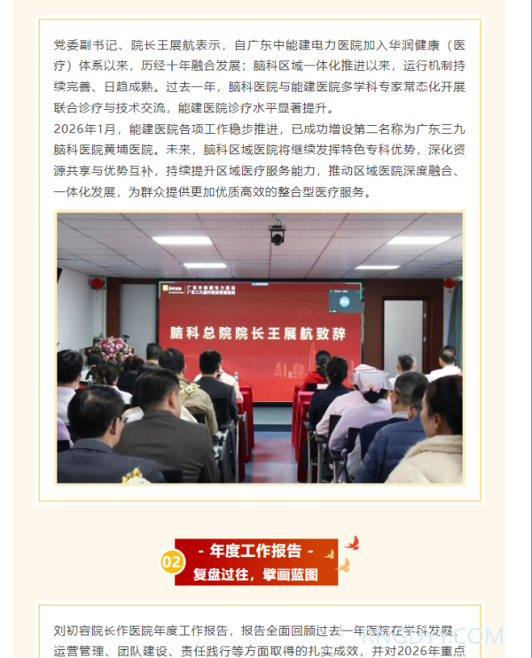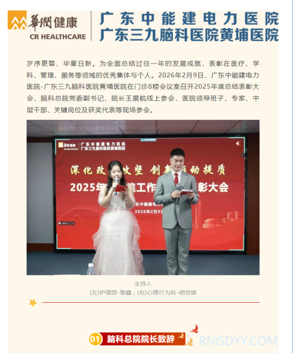 本院动态 联系电话:020-82078966 邮箱:rngd@crmedical.hk 【QQ咨询】: 复盘过往,擘画蓝图——广东中能建电力医院2025年度总结表彰大会圆满举行 http://www.rngdyy.com 时间:2026-02-13 编辑:广东中能建电力医院 阅读:54 上一篇:春节不打烊 | 广东中能建电力医院(广东三九脑科医院黄埔医院)春节正常开诊 下一篇:--敬请期待-- 我要评论: 相关报道: 复盘过往,擘画蓝图——广东中能建电力医院2025年度总结表彰大会圆满举行 春节不打烊 | 广东中能建电力医院(广东三九脑科医院黄埔医院)春节正常开诊 喜报!我院获十五运会和残特奥会广州赛区执委会感谢信表彰 本院动态 | 我院收到一封来自“12345”的特殊诉求单 喜讯!广东中能建电力医院正式增名“广东三九脑科医院黄埔医院” 开诊通知 | 长期失眠、多梦?睡眠门诊今日起正式接诊,助你安享好眠 开诊通知 | 头痛、头晕反复缠?2月2日起,头痛头晕门诊正式开诊,精准诊疗解困扰 本院动态 | “凝聚力量·绽放光芒”广东中能建电力医院举办2026年度辞旧迎新趣味运动会 地址:广州市黄埔区黄埔东路2957号志诚楼(门诊部) 黄埔东路3375号大院(住院部) 咨询:020-82078966 邮箱:rngd@crmedical.hk 传真:86(020) 82078027 患者服务小程序 官方订阅号 Copyright 2026 广东中能建电力医院版权所有 粤ICP备20049783号 服务性质:非营利性网站 粤公网安备 号