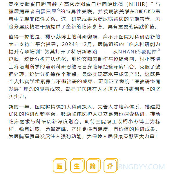 本院动态 联系电话:020-82078966 邮箱:rngd@crmedical.hk 【QQ咨询】: 喜报!我院柯小苏博士学术论文荣登国际权威 SCI 期刊,科研成果再添新彩 http://www.rngdyy.com 时间:2026-02-27 编辑:广东中能建电力医院 阅读:22 上一篇:元宵暖病房 医患共团圆!全院多科室送温情,汤圆甜入心间 下一篇:本院动态 | 夯实区域一体化建设成果 共促医疗质量安全提升——脑科总院医务部莅临我院开展交流访谈 我要评论: 相关报道: 关于调整综合诊查类、妇科类、心血管系统类等医疗服务项目价格的公示 当患者想拔掉那根“管”——血液净化科人文关怀纪实:把诊疗送到家,把温暖送进心 世界昏迷日 | 电力医院在门诊一楼大厅开展世界昏迷日主题综合义诊活动 世界睡眠日 | 电力医院到火村岗头园安置房开展“优质睡眠,美好生活”世界睡眠日综合义诊活动 世界肾脏日 | 关爱肾脏健康——电力医院肾内科开展“2026年世界肾脏日公益惠民义诊活动” 复盘过往,擘画蓝图——广东中能建电力医院2025年度总结表彰大会圆满举行 春节不打烊 | 广东中能建电力医院(广东三九脑科医院黄埔医院)春节正常开诊 喜报!我院获十五运会和残特奥会广州赛区执委会感谢信表彰 地址:广州市黄埔区黄埔东路2957号志诚楼(门诊部) 黄埔东路3375号大院(住院部) 咨询:020-82078966 邮箱:rngd@crmedical.hk 传真:86(020) 82078027 患者服务小程序 官方订阅号 Copyright 2026 广东中能建电力医院版权所有 粤ICP备20049783号 服务性质:非营利性网站 粤公网安备 号