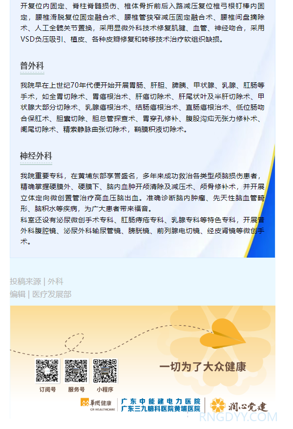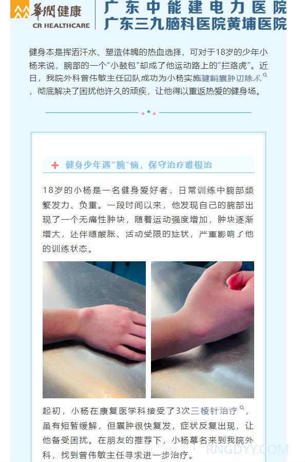 典型案例 联系电话:020-82078966 邮箱:rngd@crmedical.hk 【QQ咨询】: 润心分享 | 18岁健身少年腕部“鼓包”反复?我院曾伟敏主任精准手术解顽疾 http://www.rngdyy.com 时间:2026-02-24 编辑:广东中能建电力医院 阅读:18 上一篇:润心分享 | 74岁“多发基础病”奶奶无痕手术,告别脱垂烦扰 下一篇:--敬请期待-- 我要评论: 相关报道: 润心分享 | 74岁“多发基础病”奶奶无痕手术,告别脱垂烦扰 润心分享 | 神经源性膀胱怎么办?间歇导尿:安全、自主的膀胱管理方案 润心分享 | 疝病得愈:微创续写健康篇章 润心分享 | 93岁高龄髋部骨折,1小时手术助其次日行走!医者仁心再创生命奇迹 润心分享 | 25岁小伙疯狂健身差点凉凉! 润心分享 | 断腕重生:医术铸就生命奇迹 润心分享 | 一例糖尿病高渗性昏迷合并酮症酸中毒病例分享及科普 润心分享 | 我院成功救治一例严重车祸伤致全身多处粉碎骨折合并脾破裂患者! 地址:广州市黄埔区黄埔东路2957号志诚楼(门诊部) 黄埔东路3375号大院(住院部) 咨询:020-82078966 邮箱:rngd@crmedical.hk 传真:86(020) 82078027 患者服务小程序 官方订阅号 Copyright 2026 广东中能建电力医院版权所有 粤ICP备20049783号 服务性质:非营利性网站 粤公网安备 号